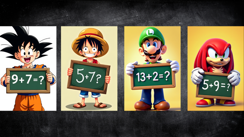 23 flash cards teaching basic math, both addition and subtraction that contain popular anime and video game characters.