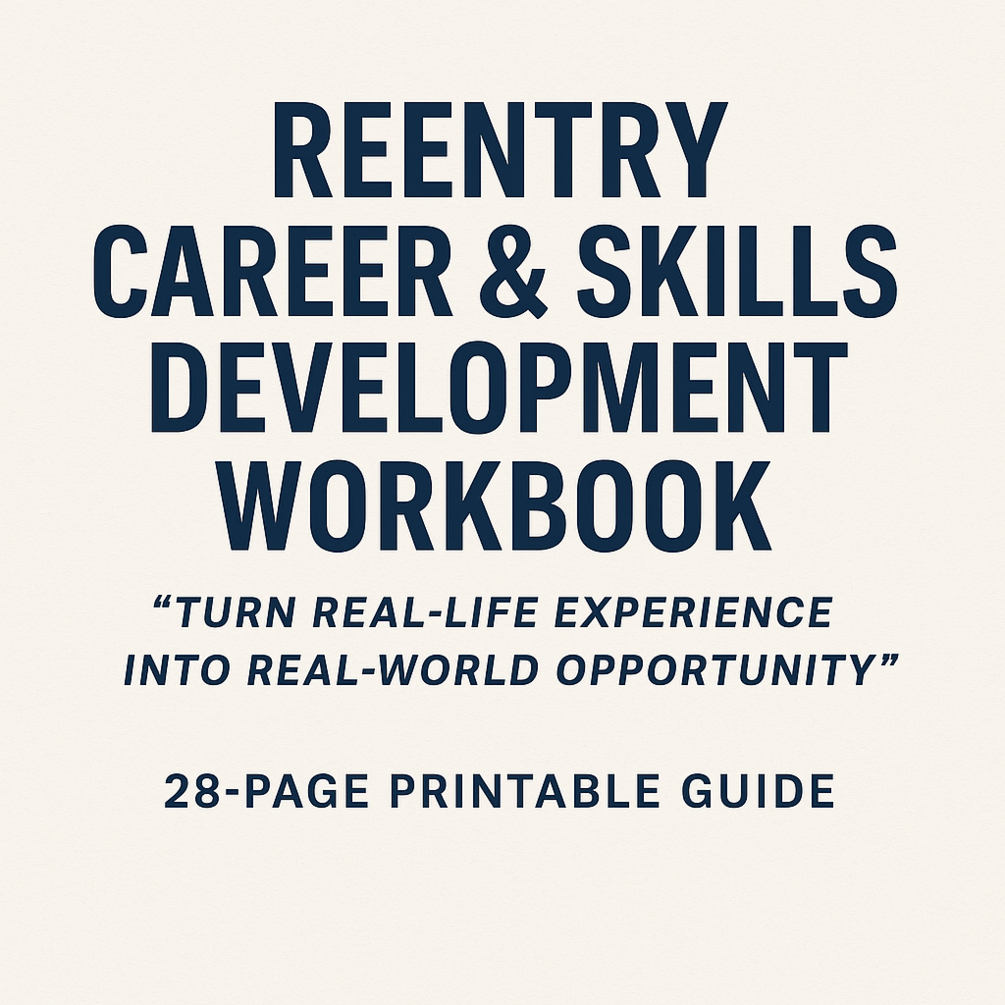 This 28-page printable workbook is designed to help justice-impacted individuals build a confident, career-ready future. Whether you're starting from scratch or rebuilding, this guided resource shows how to turn real-life experience into real-world opportunity.